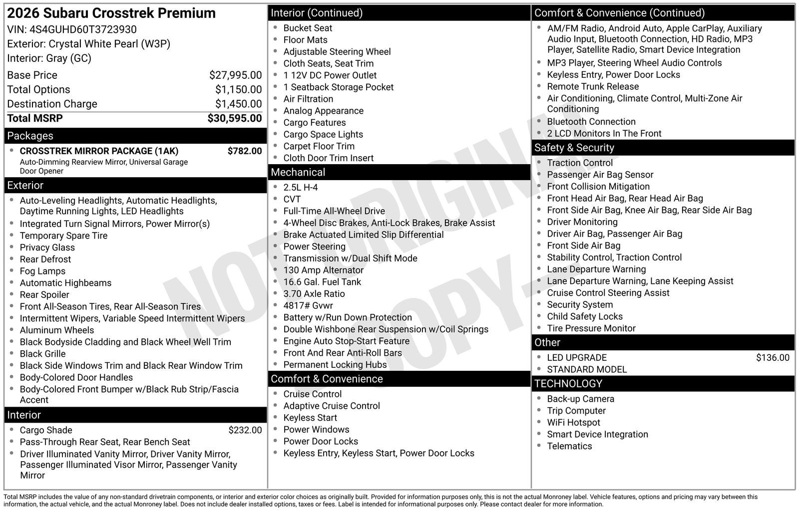 - Vehicle Name: Subaru Crosstrek