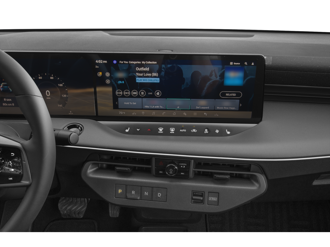 • Radio: NissanConnect w/Navigation -inc: 14.3" center touch-screen display w/Google built in, wireless Apple CarPlay, wireless Android Auto, Bluetooth® hands-free phone system, hands-free text messaging assistant, streaming audio via Bluetooth®, voice recognition, SiriusXM w/360L, 2 front USB type C, in-vehicle data and Wi-Fi and wireless phone charger