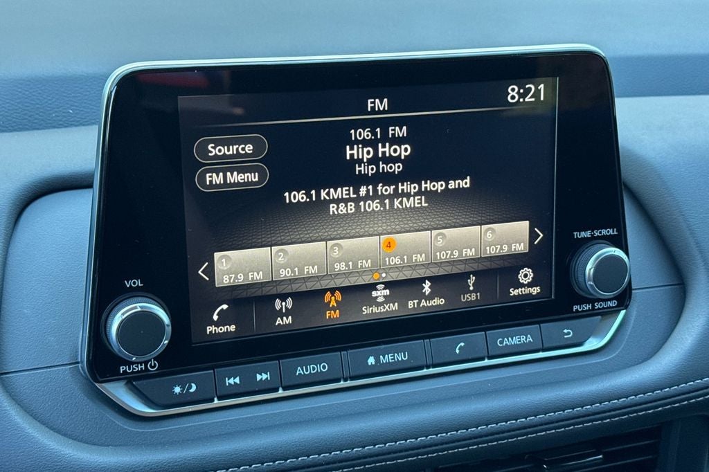 - Radio: AM/FM NissanConnect -inc: 6 speakers plus 2 tweeters, Apple CarPlay, Android Auto, 8" color touch screen display, Bluetooth®, 2 front USB type-C, Wi-Fi hotspot and NissanConnect Services powered by SiriusXM