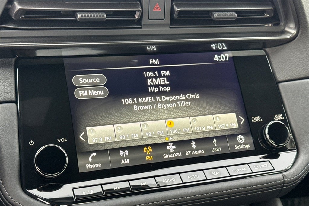 - Radio: Bose Audio System w/8 Speakers -inc: 9" touchscreen w/navigation, active noise cancellation (ANC), active sound enhancement (ASE), Bluetooth® hands-free phone system, streaming audio via Bluetooth®, SiriusXM Radio, wireless Apple CarPlay, Android Auto, hands-free text messaging assistant, voice recognition, Siri Eyes Free, 1 USB type-A, 1 USB type-C, Alexa connectivity and NissanConnect services w/Wi-Fi hotspot