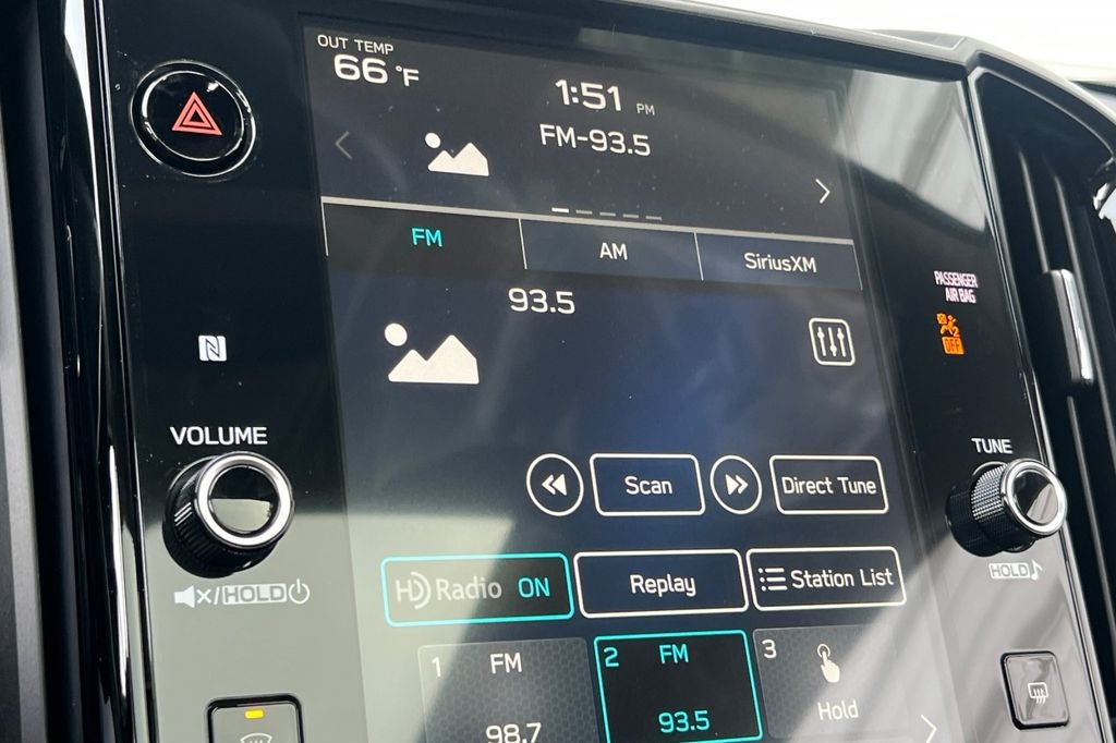 - Radio: Subaru 11.6" Multimedia System w/Navigation -inc: AM/FM stereo HD Radio, multi-touch gesture high resolution display screen, voice activated controls for radio and navigation, Bluetooth® audio streaming and hands-free phone connectivity w/SMS text messaging connectivity (refer to subaru.com for cell phone compatibility), TomTom navigation software w/what3words, iPod control capability, smartphone integration for Android Auto and Apple CarPlay w/full screen view and wireless connection, USB audio system update, audio system control switches, hands-free phone switches and voice command talk switch on steering wheel, harman/kardon quantum logic surround sound speaker system w/14 speakers, subwoofer and harman/kardon 792 watt equivalent maximum output amplifier, illuminated 3.5mm auxiliary input jack, illuminated USB A and C input/charge ports, SiriusXM w/360L (4 months free trial included/subscription required after) and SiriusXM Travel Link (4 months free trial included/subscription required after)