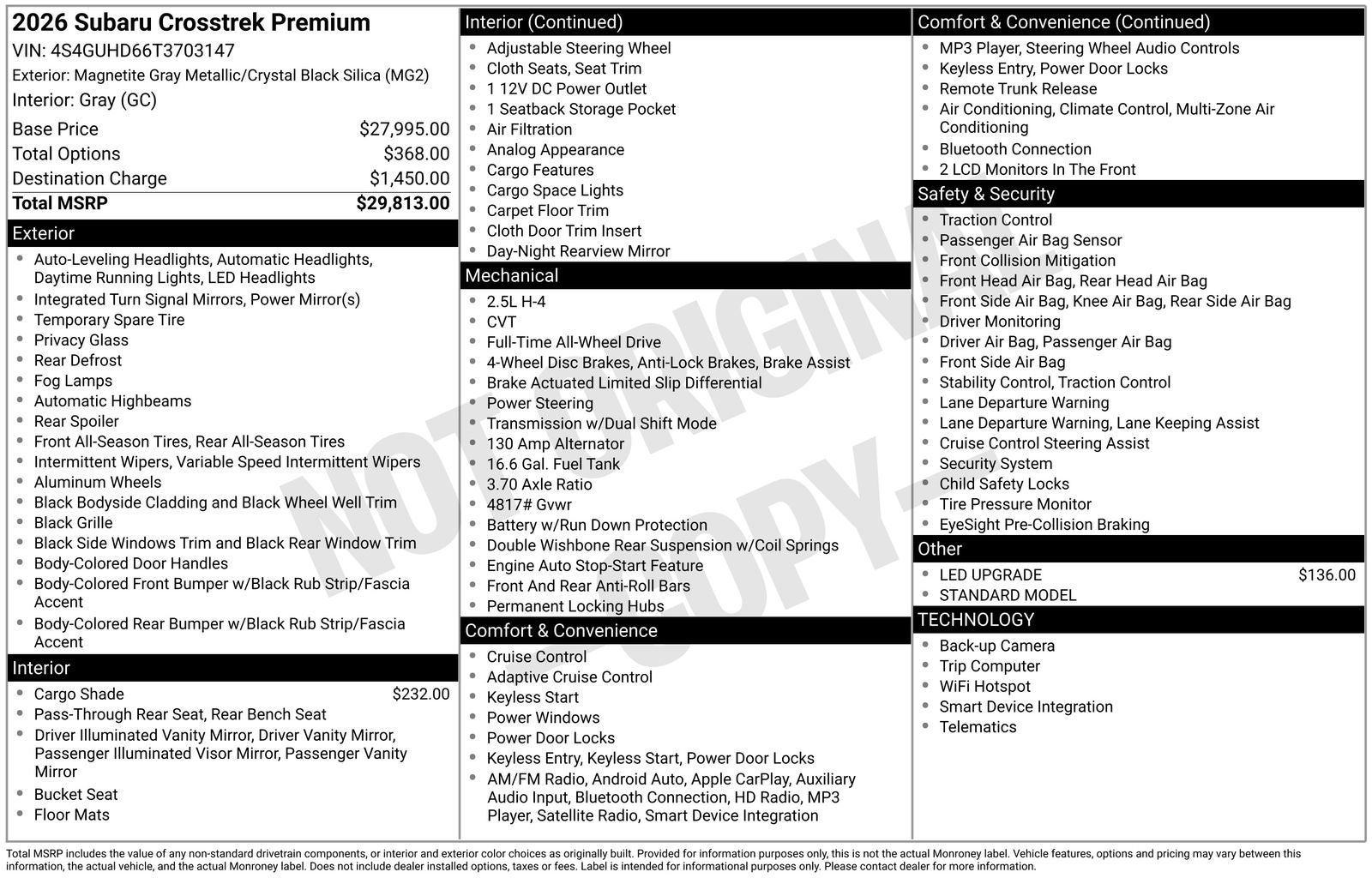 - Vehicle Name: Subaru Crosstrek