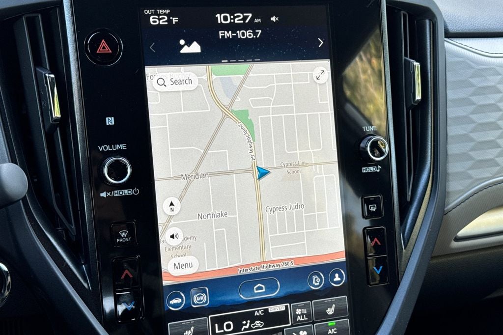 - Radio: Subaru 11.6" Multimedia Navigation System -inc: valet mode, integrated center information display, AM/FM stereo HD Radio, multi-touch gesture high resolution display screen, voice activated controls, voice activated navigation, Bluetooth® audio streaming and hands-free phone connectivity w/SMS text messaging (refer to Subaru.com for cellphone compatibility), TomTom navigation software w/what3words, iPod control capability, smartphone integration: Android Auto and Apple CarPlay w/full screen view and wireless connection, SiriusXM satellite radio w/360L (free 4-month trial subscription included), USB and Over The Air (OTA) audio system update, USB and Map Over The Air (MOTA) TomTom navigation system update (3 years free map updates), steering wheel controls, 6 speakers, 3.5mm auxiliary input jack and roof mounted audio, satellite antenna and SiriusXM Travel Link (4 months free trial included/subscription required after)
