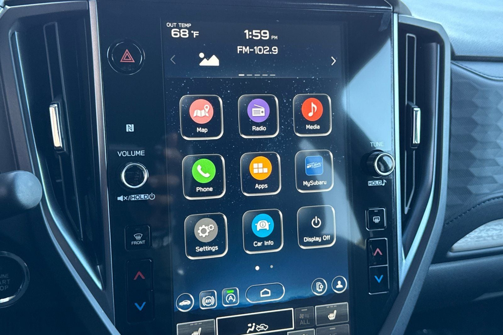 - Radio: Subaru 11.6" Multimedia Plus System -inc: valet mode, integrated center information display, AM/FM stereo HD Radio, multi-touch gesture high resolution display screen, voice activated controls, Bluetooth® audio streaming and hands-free phone connectivity w/SMS text messaging (refer to Subaru.com for cellphone compatibility), iPod control capability, smartphone integration: Android Auto and Apple CarPlay w/full screen view and wireless connection, USB and Over The Air (OTA) audio system update, steering wheel controls, 6 speakers, 3.5mm auxiliary input jack and roof mounted audio and satellite antenna