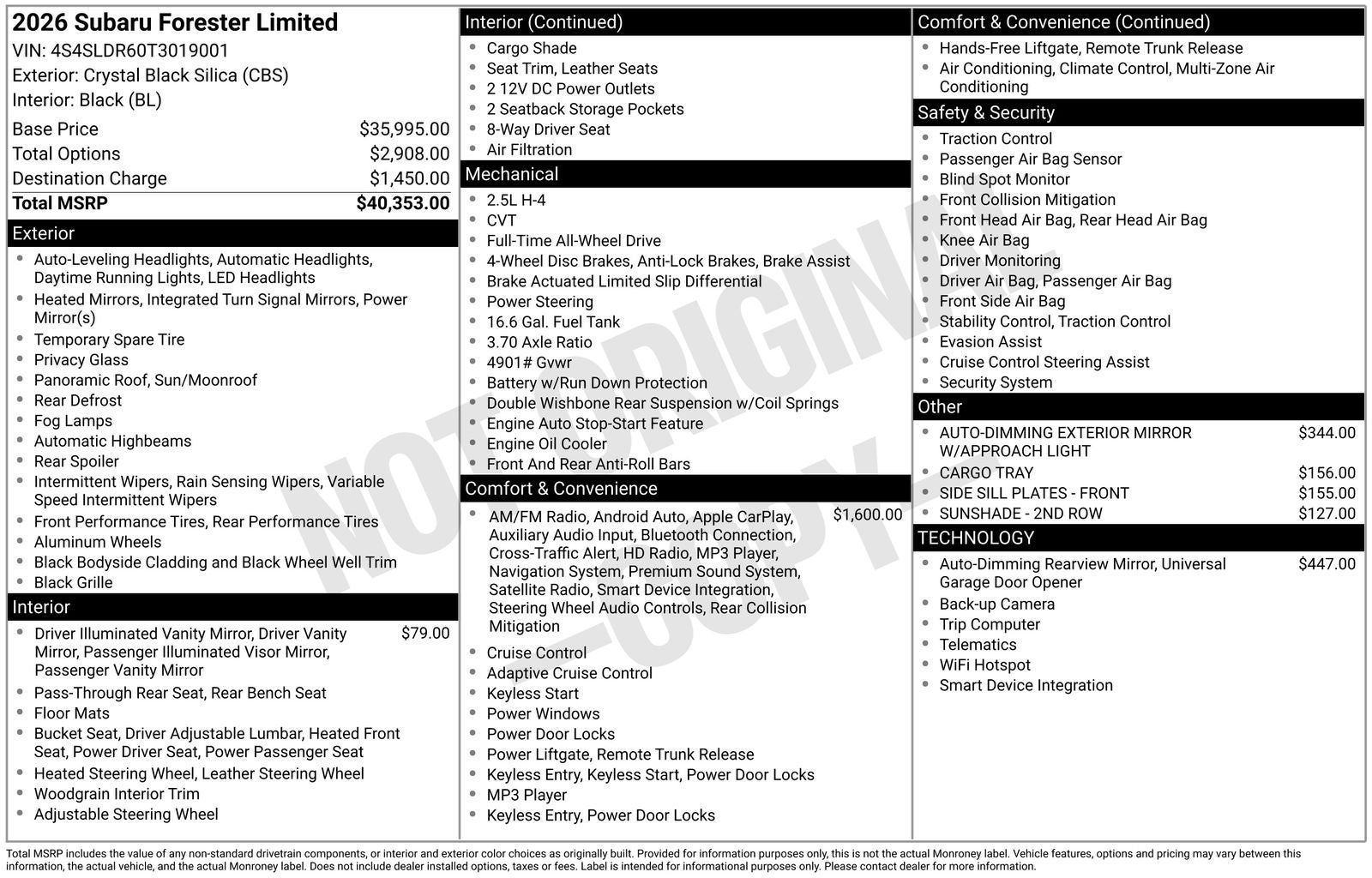 - Vehicle Name: Subaru Forester