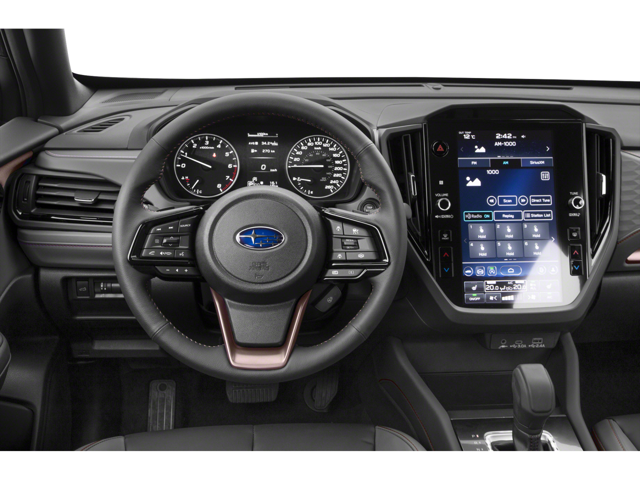 - Radio: Subaru 11.6" Multimedia Plus System -inc: valet mode, integrated center information display, AM/FM stereo HD Radio, multi-touch gesture high resolution display screen, voice activated controls, Bluetooth® audio streaming and hands-free phone connectivity w/SMS text messaging (refer to Subaru.com for cellphone compatibility), iPod control capability, smartphone integration: Android Auto and Apple CarPlay w/full screen view and wireless connection, SiriusXM satellite radio w/360L (free 4-month trial subscription included), USB and Over The Air (OTA) audio system update, steering wheel controls, 6 speakers, 3.5mm auxiliary input jack and roof mounted audio and satellite antenna