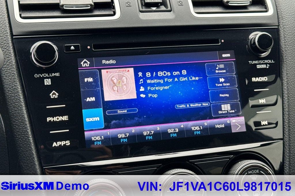 - Radio: Subaru STARLINK 7.0" Multimedia Plus System -inc: AM/FM stereo HD Radio w/single-disc CD player, MP3/WMA/CRR/RW file capability, multi touch gesture high resolution display, 7.0" LCD screen, voice activated controls, Bluetooth® audio streaming connectivity, Bluetooth® hands-free phone and text messaging connectivity (applicable w/compatible cell phone), Near Field Communication (NFC), iPod control capability, rear-vision camera display, SiriusXM All Access radio (subscription required), SiriusXM Travel Link (subscription required), smartphone integration: AHA, Android Auto, CarPlay, Pandora and STARLINK cloud applications, 6 speakers, 3.5mm auxiliary input jack, dual USB ports and roof mounted audio and satellite antenna