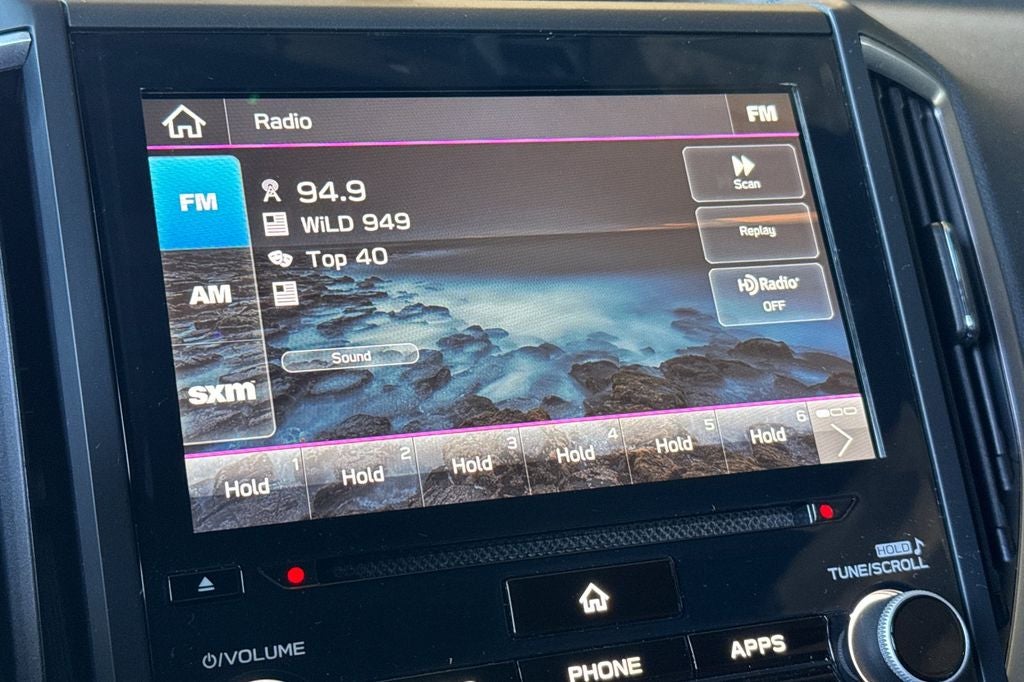 • Radio: Subaru STARLINK 8.0" Multimedia Plus System -inc: AM/FM stereo, HD Radio, single disc CD player w/MP3/WMA/CRR/RW file capability, multi-touch gesture high resolution display screen, voice activated controls, Bluetooth® audio streaming and hands-free phone connectivity, Bluetooth® hands-free SMS text messaging connectivity, Near Field Communication (NFC), iPod control capability, rear-vision camera display, SiriusXM All Access radio (4 months free trial/subscription required after), SiriusXM Travel Link (4 months free trial/subscription required after), smartphone integration: AHA, Android Auto, Apple CarPlay, Pandora, STARLINK cloud applications, 6 speakers, 3.5mm auxiliary input jack, dual USB A input charge ports, dual USB input charge ports, roof mounted antenna and audio/satellite connected services