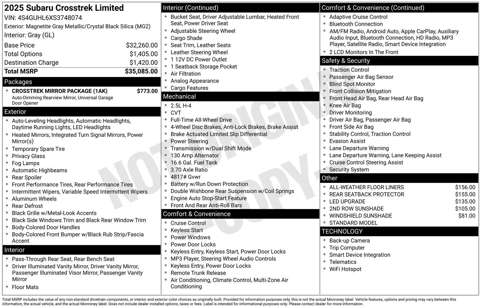 - Vehicle Name: Subaru Crosstrek