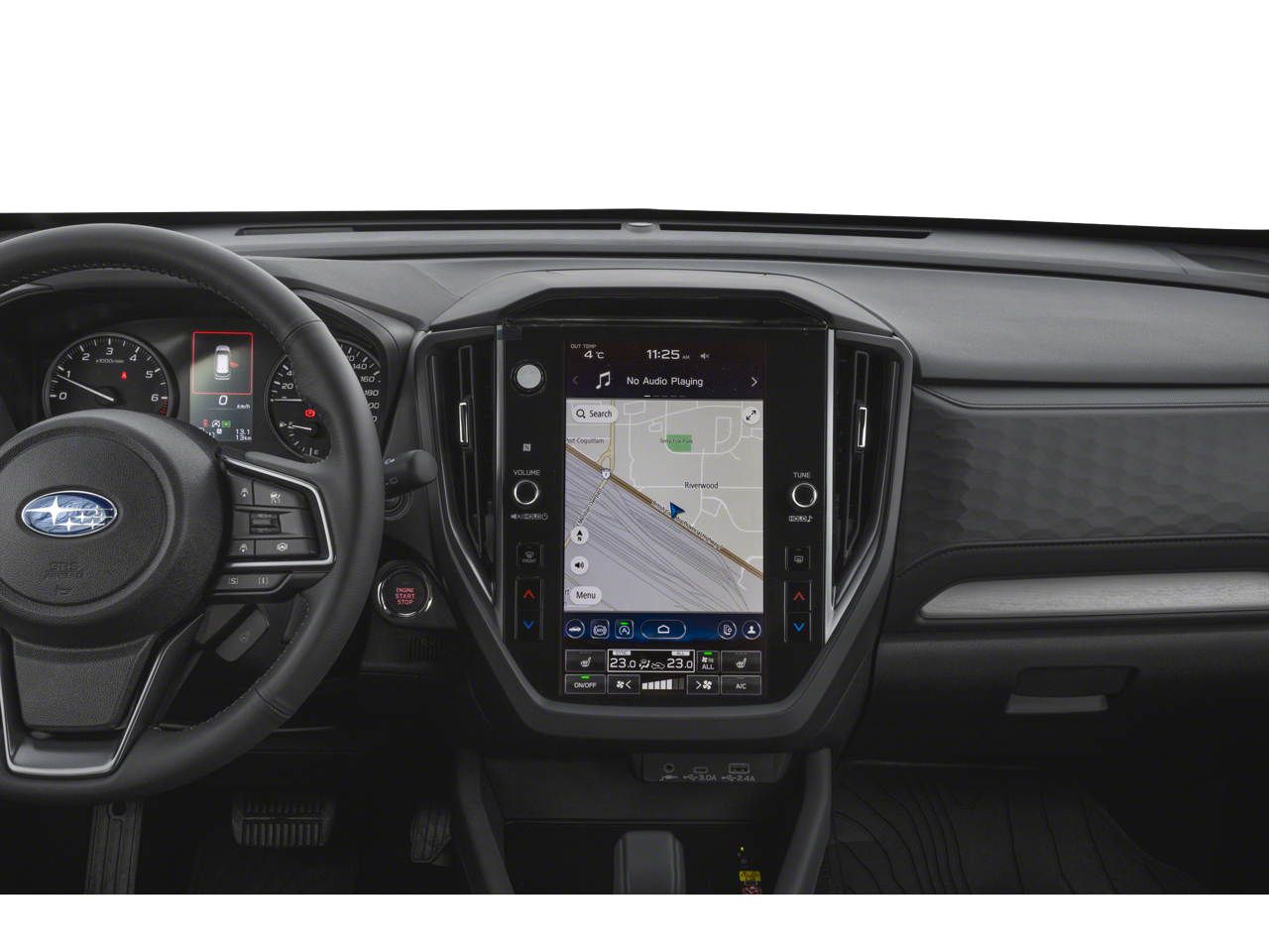 • Radio: Subaru 11.6" Multimedia Plus System -inc: valet mode, integrated center information display, AM/FM stereo HD Radio, multi-touch gesture high resolution display screen, voice activated controls, Bluetooth® audio streaming and hands-free phone connectivity w/SMS text messaging connectivity (refer to subaru.com for cell phone compatibility), iPod control capability, SiriusXM w/360L (4 months free trial/subscription required after), SiriusXM Travel Link (3 years free trial/subscription required after), smartphone integration for Android Auto and Apple CarPlay w/full screen view and wireless connection, USB and Over The Air (OTA) audio system update, steering wheel control switches for audio and Bluetooth®, 6 speakers, 3.5mm auxiliary input jack and roof mounted audio and satellite antenna
